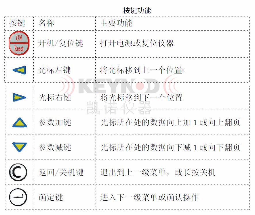 保存仪器设置:设置完毕后,按进入键,仪器将设置的内容保存起来并退回上一级菜单。下次开机或复位时自动将上次设置内容调入。如果用户直接按退出键,下次开机时或复位时仪器将恢复到更改前的参数。