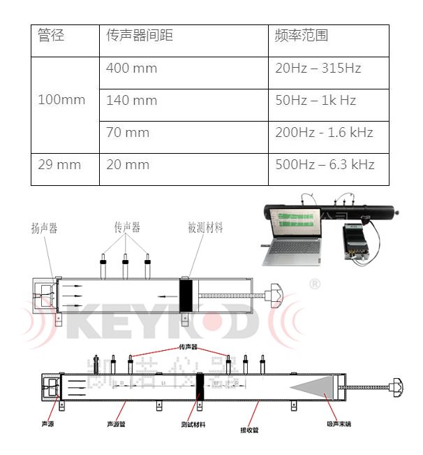 传递函数法吸声系数及隔声测量系统是一套符合国家相关标准的声学材料测试仪器,执行标准:GB/T 18696.2-2002(ISO 10534-2:1998)《声学 阻抗管中吸声系数和声阻抗的测量 第2部分 传递函数法》,GB/Z 27764-2011《声学.阻抗管中传声损失的测量.传递矩阵法》。