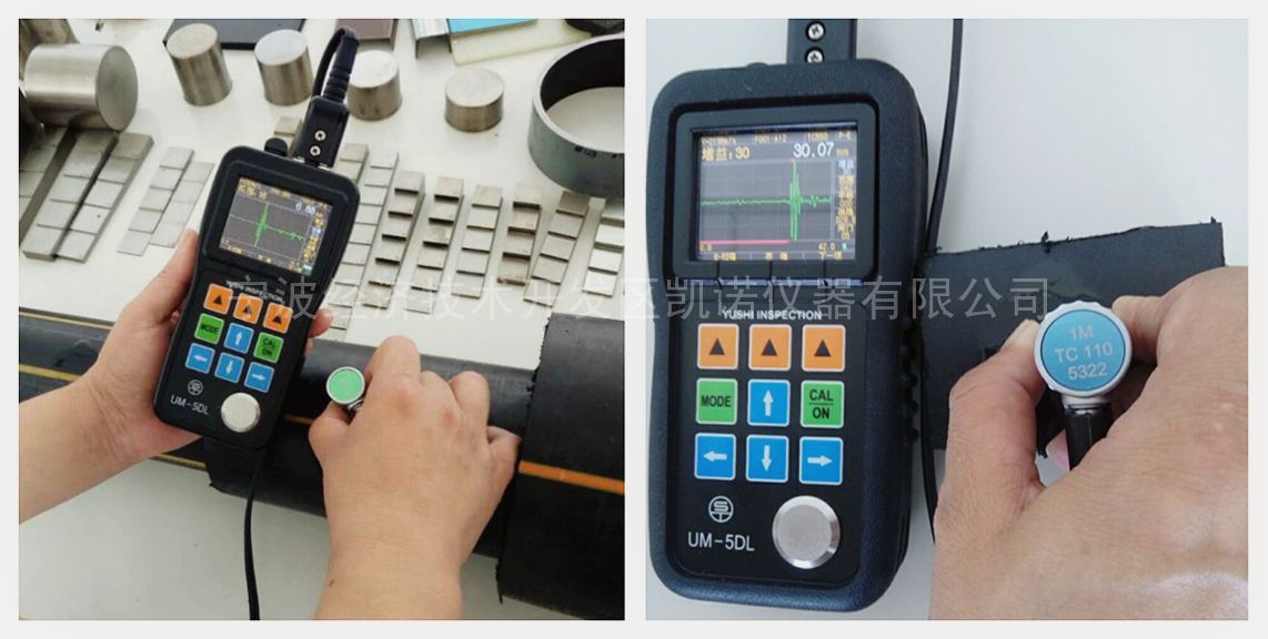产品分析:基于水管、燃气管材料的特殊性,内部杂波多,选用了UM-5DL超声波测厚仪进行测量。
