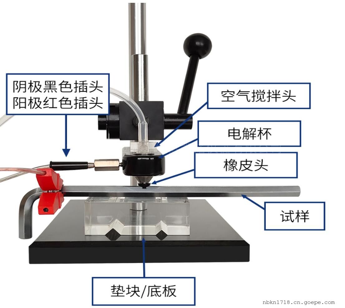 樶后,松开旋钮,将支杆上提,然后再固定旋钮,用吸水纸擦干橡皮头和被测工件表面。如测试同类镀种,连续测量时可不用水清洗,只用吸水纸擦干净电解杯内部和橡皮头外部即可。