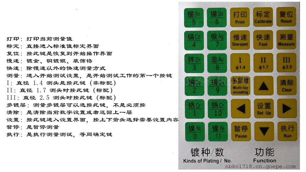 电解测厚仪ET-3操作按键说明:电解测厚仪ET-3测量操作说明如下: