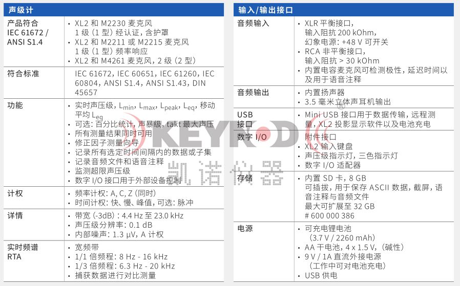 XL2声级计 声学频谱分析仪的主要性能指标: **更多性能指标参见文档《瑞士NTi音频声频分析仪声级计XL2技术指标》。