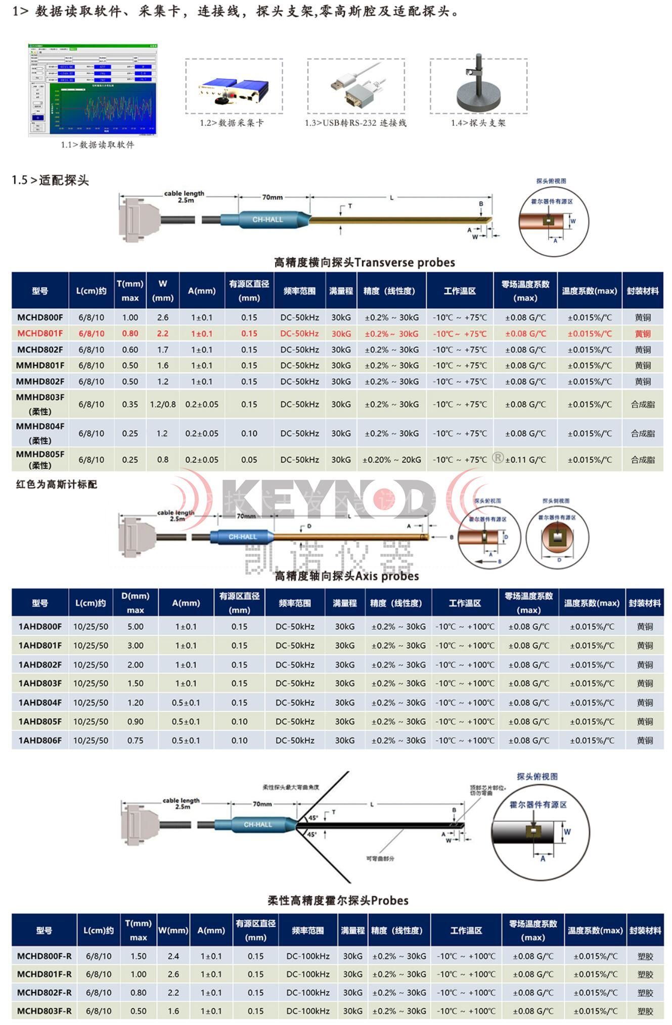CH-1500高斯计可选配常 规及耐高低温一维探头、单轴探头、横向探头