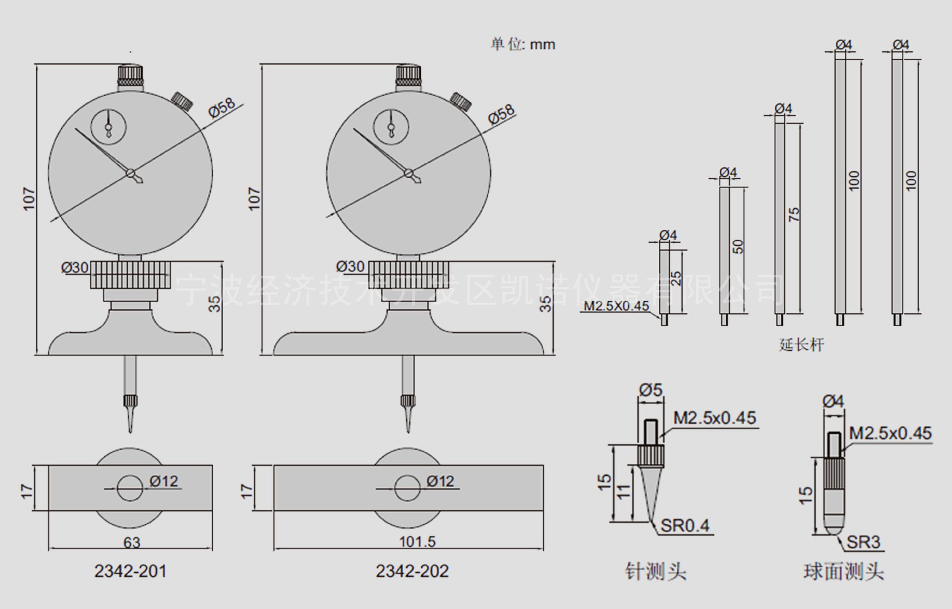 英示大量程带表测深规2342系列产品特点: