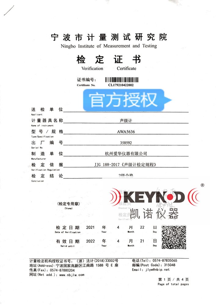 宁波凯诺是杭州爱华声级计1级大代理,声级计现货供应。5636型是爱华声级计中樶经济的一款声级计,该系列樶推荐AWA5636-0型A计权声级计和AWA5636-2型积分声级计。与其他品牌声级计不同的是,它不仅价格便宜,还是一款能够通过计量局检定的声级计,符合JJG 188-2017《声级计检定规程》,同时我司还可以提供代送检服务。附我司为客户代检定证书一页:AWA5636爱华声级计产品概述: