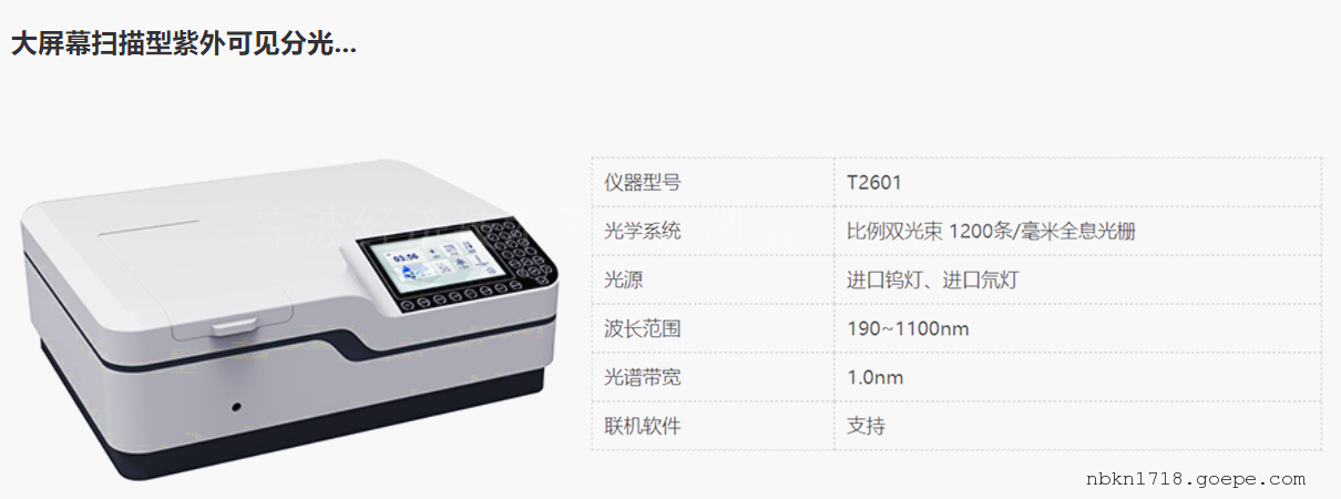 详细信息| 询价留言品牌:佑科 加工定制:否 型号:T2601型 波长范围:190~1100nm nm 加工定制:否 型号:T2601型 佑科扫描型紫外可见分光光度计丨欧姆龙按键系列T2601型