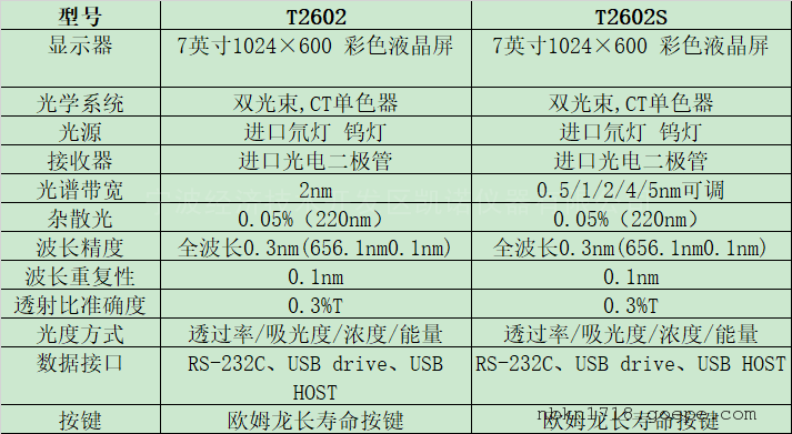 T2602S佑科双光束全波长紫外可见分光光度计技术指标: