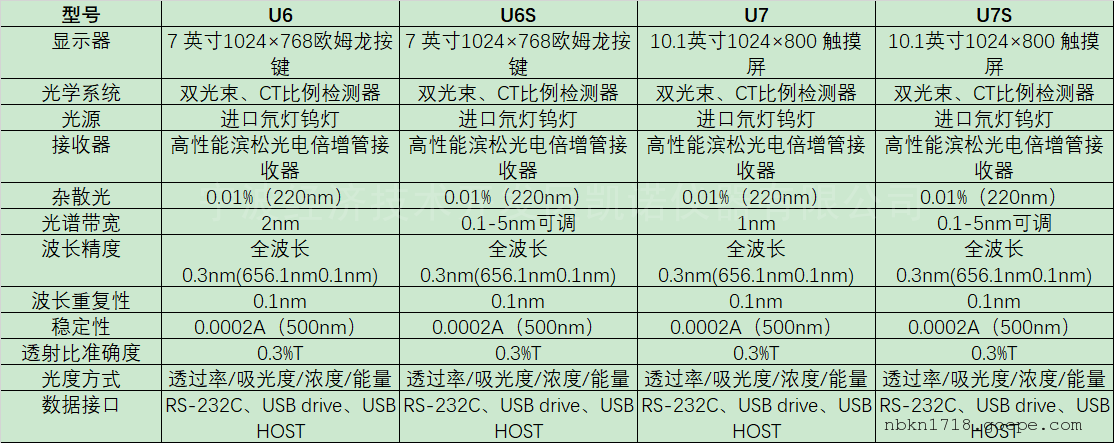 光电倍增管双光束紫外分光光度计佑科T-U6型相关型号参数对比: