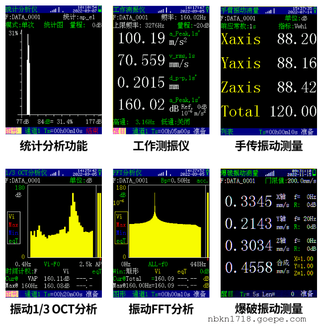 统计分析仪:环境振动测量,统计分析功能, Wk,Wm,Wz,Wx-y计权