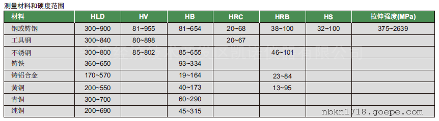 根据里氏(HLD),可转换为维氏(HV)、布氏(HB)、洛氏(HRC和HRB)、肖氏(HS)和拉伸强度(MPa)
