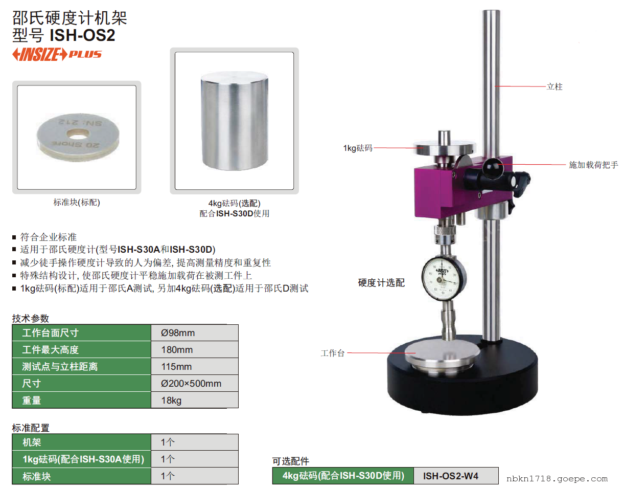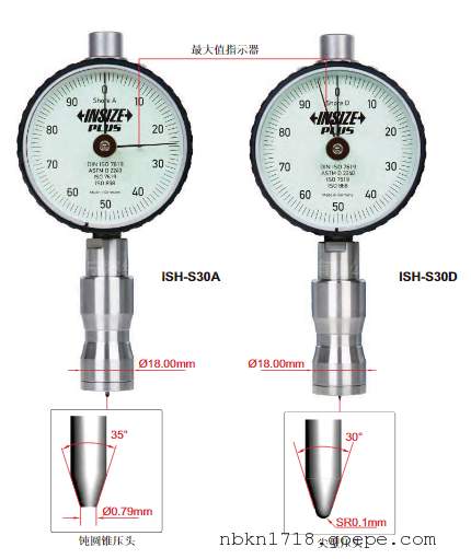 INSIZE英示ISH-S30A/D指针式邵氏硬度计技术指标: