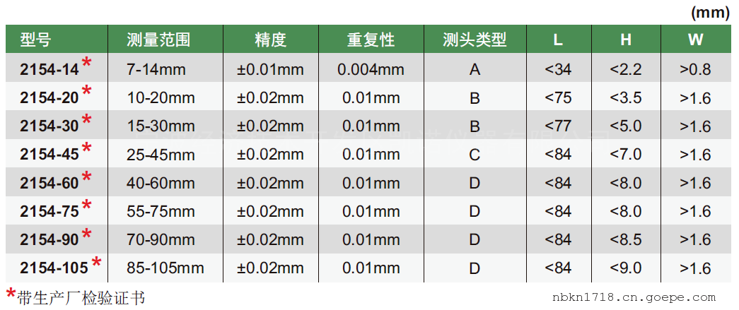 INSIZE英示2154-45数显三点内卡规技术指标:可选附件: