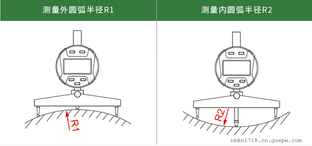 英示2183数显半径规符合企业标准,主要用于测量内圆弧和外圆弧的半径,配有五个测量爪用于测量不同尺寸的圆弧。INSIZE英示2183数显半径规产品特点: