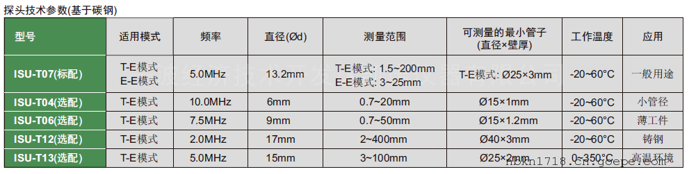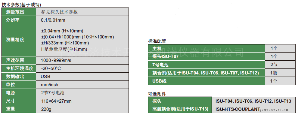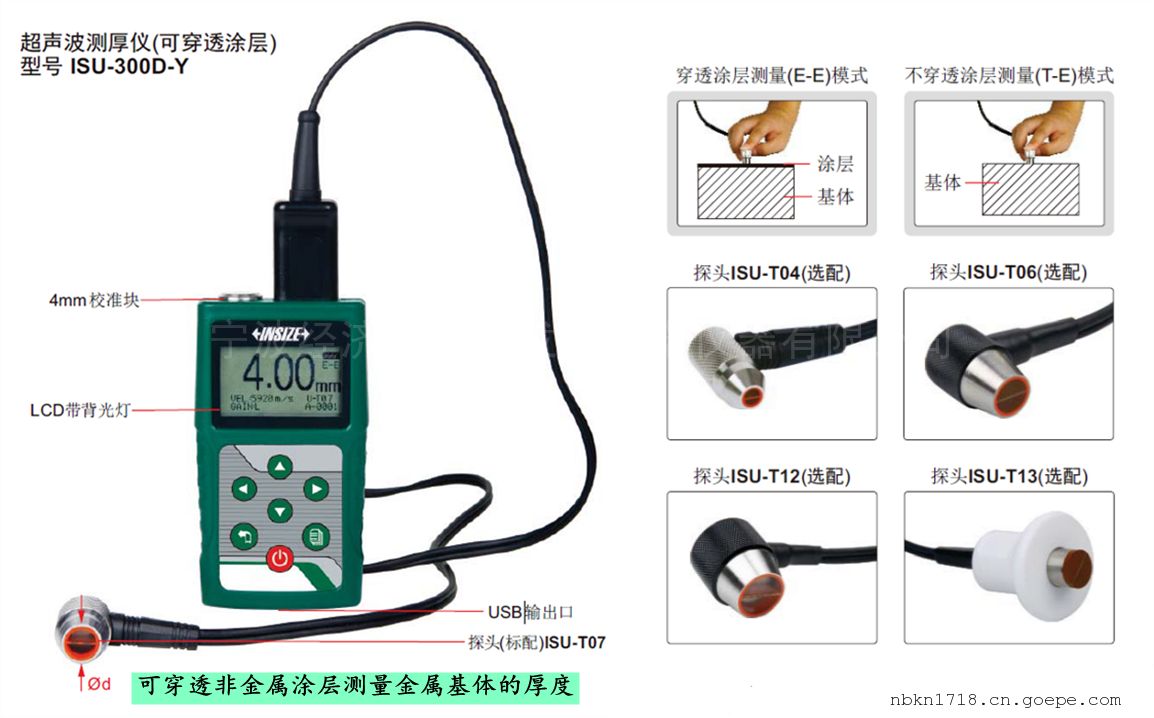 INSIZE英示ISU-300D超声波测厚仪技术参数: