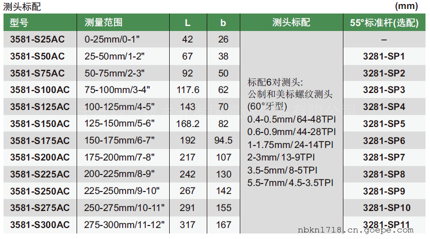 INSIZE英示3581系列直进式数显螺纹千分尺功能特点: