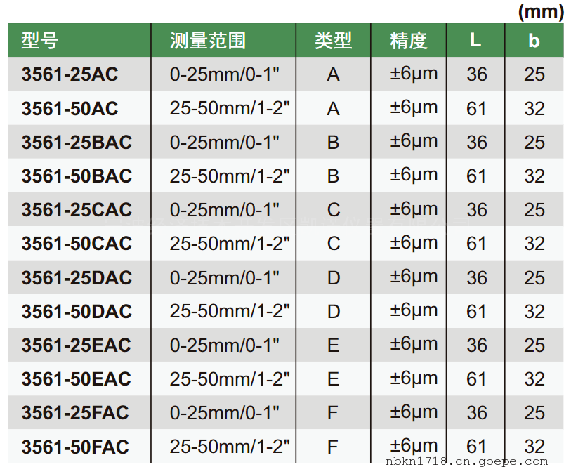 INSIZE英示3561数显管壁厚千分尺规格参数:
