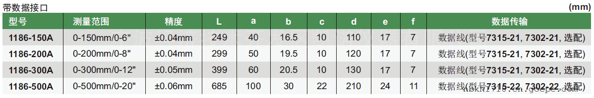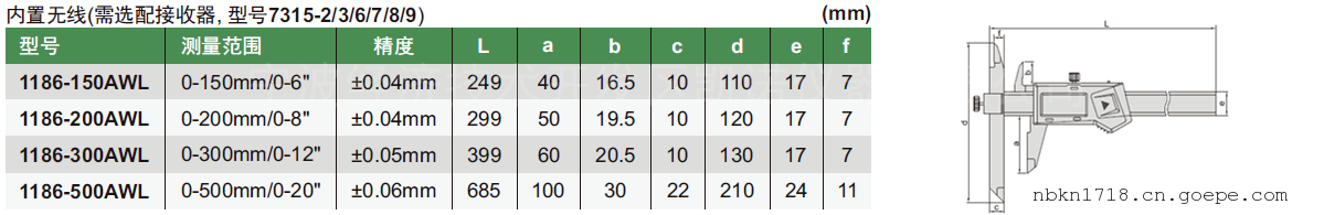 INSIZE英示1186系列数显活动量爪卡尺规格参数: