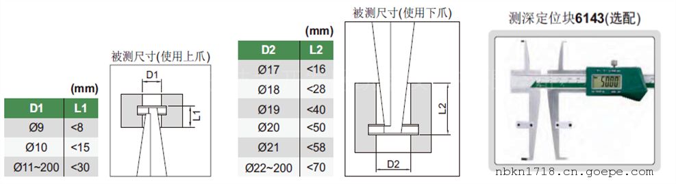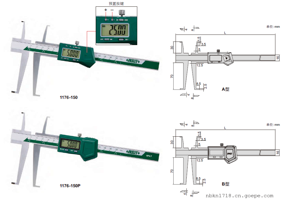 INSIZE英示1176系列数显内沟槽卡尺产品特点与功能:
