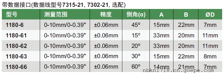 详细信息| 询价留言品牌:INSIZE英示 型号:1180-6系列 加工定制:否 类型:精密 规格:见参数 适用范围:测量内孔、倒角尺寸 INSIZE英示1180-6系列数显倒角规