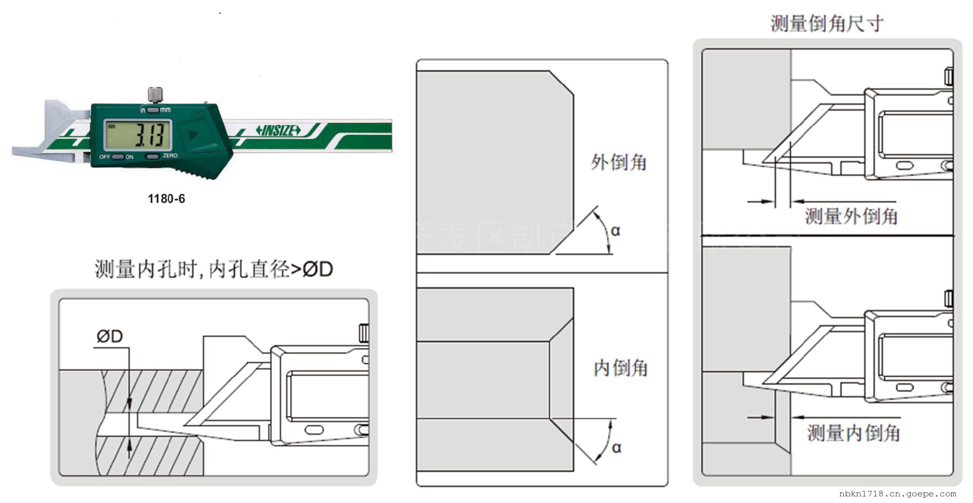 INSIZE英示1180-6系列数显倒角规产品特点: