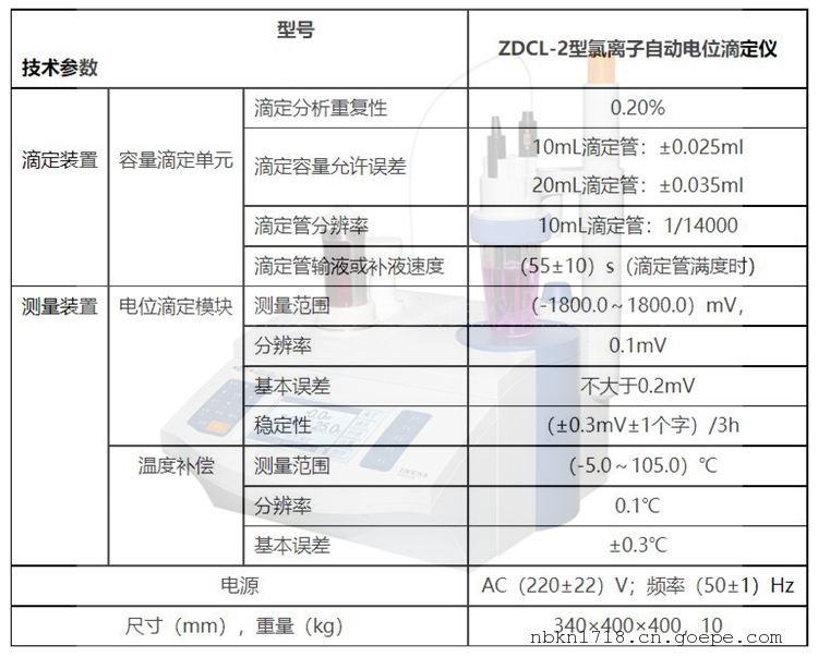 雷磁ZDCL-2型氯离子电位滴定仪技术参数: