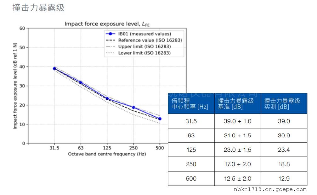 • 撞击球在多个测量点从 1 m(±1 cm)高度自由垂直落下,在接收室测量*大声压级