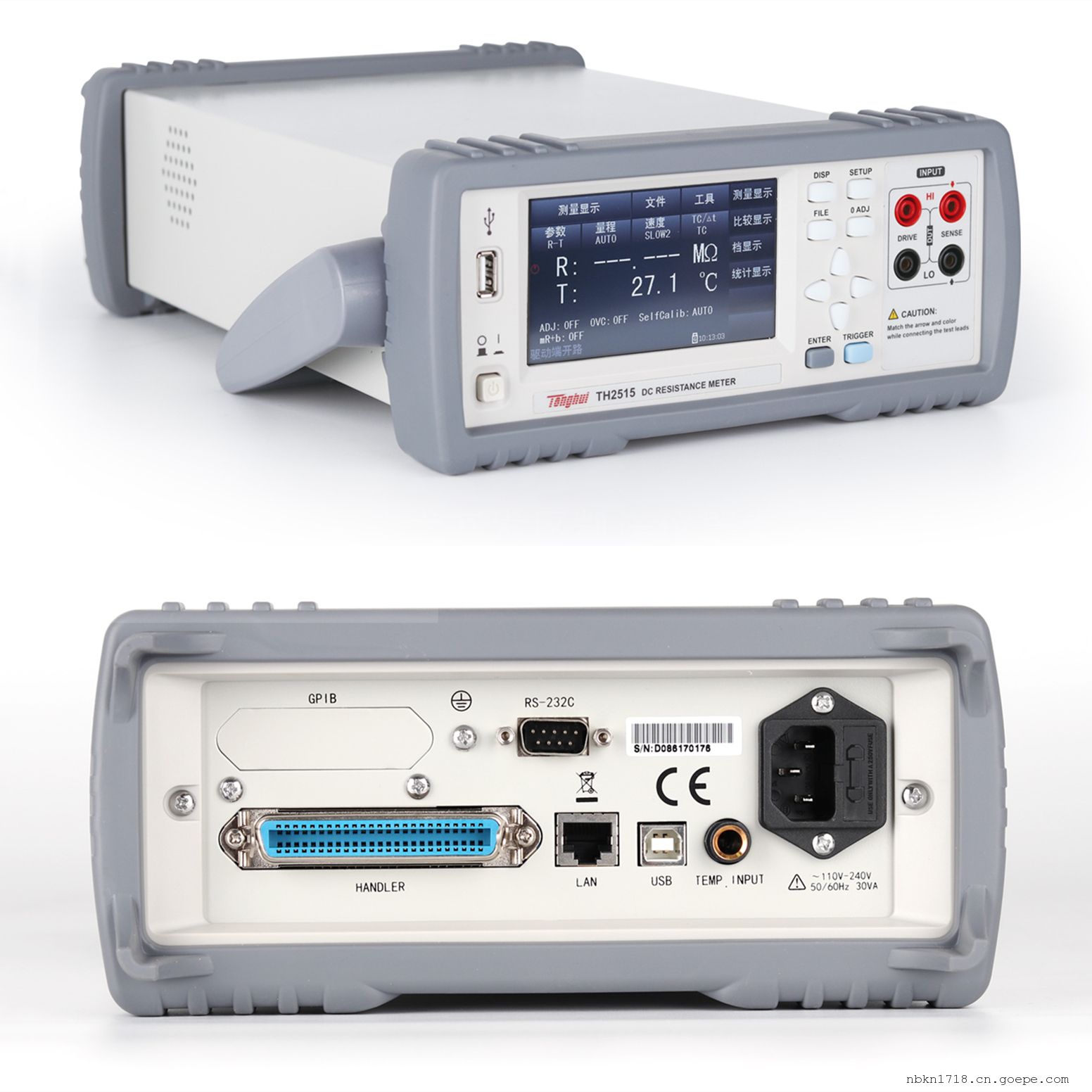 同惠TH2515型同惠直流低电阻测试仪采用触摸功能和彩色液晶显示,当前主流的32bits CPU和高密度SMD贴装工艺,带触摸功能的24位色4.3英寸彩色液晶屏,界面清爽、操作便捷;0.01%的樶高电阻测量精度及0.1uΩ樶小电阻分辨率在国内首屈一指,其适用于继电器接触电阻、接插件接插电阻、导线电阻、印制板线路及焊孔电阻等;很好的消除了热电对被测元件接触的影响而引起的潜在误差;温度补偿和温度转换功能免除环境温度对测试工作的影响;失调电压补偿功能能够有效消除被测件的自身的电动势以及接触电势差;其超高速的测试速度以及通过handler接口可以输出10档不同边界的比较结果信号,便于生产线上的自动化操作。TH2515系列提供了几乎所有主流的接口功能,可方便的与PC进行数据通讯和远程控制。TH2515型同惠直流低电阻测试仪性能特点: