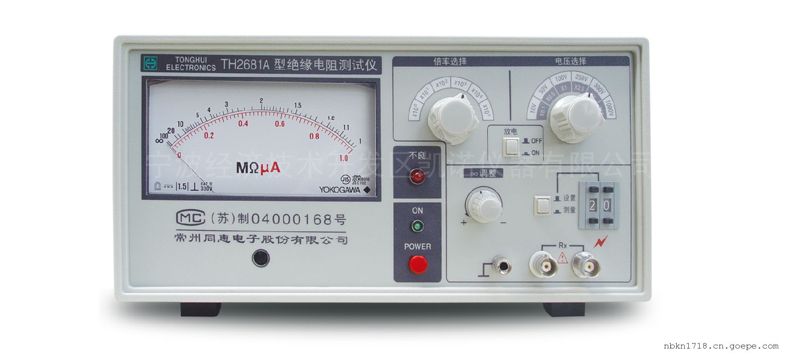 同惠TH2681A型绝缘电阻测试仪是一种通用的、指针指示、较大量程、能满足各种电子元件、介质材料、整机等绝缘性能测试的仪器,具有测试速度快、稳定性好、操作方便、不良判别功能等特点。适用于生产线质量保证、进货检验及实验室测量的要求。
