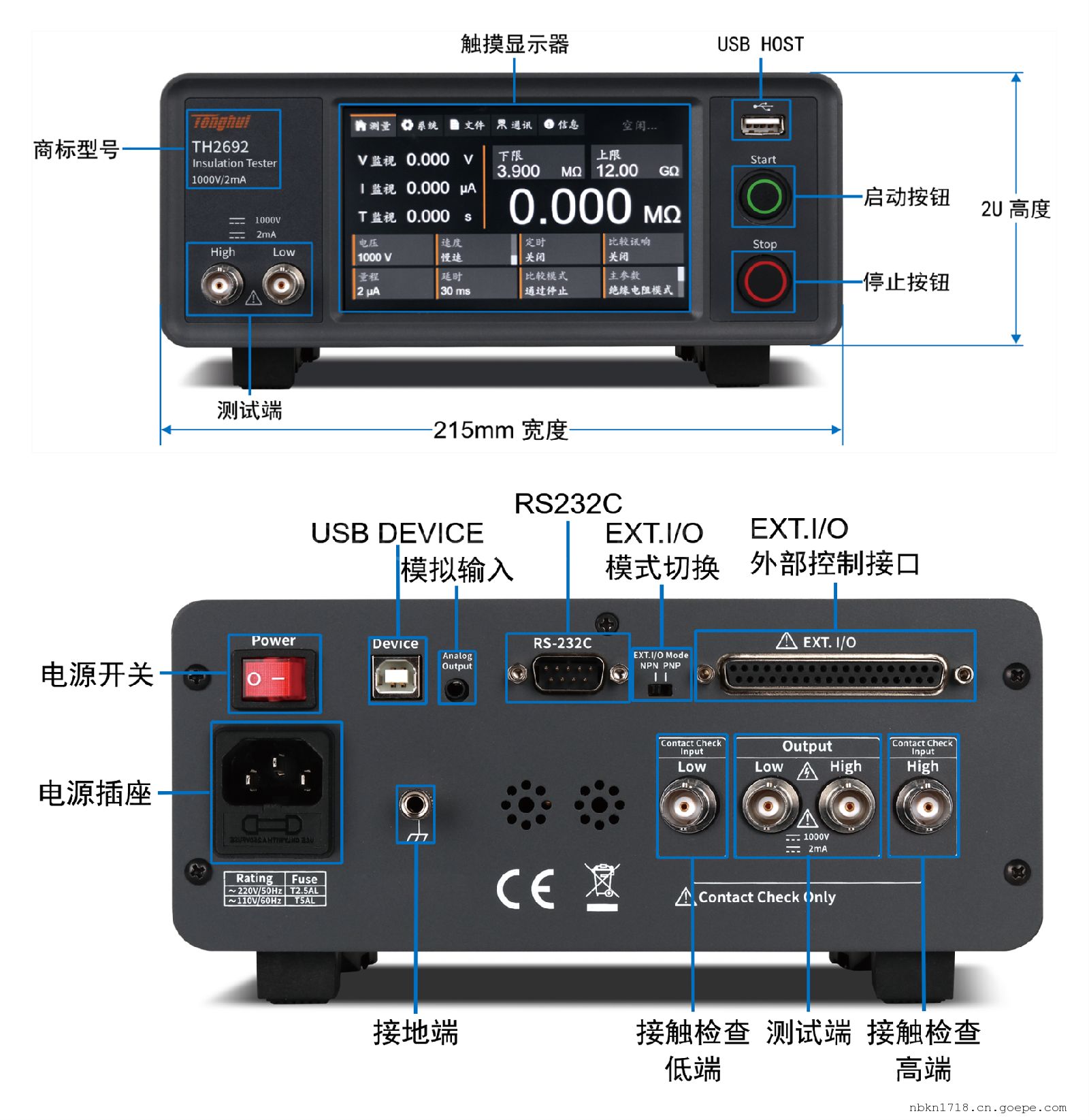 同惠新款TH2692型是一款高电压爬升速度、高精度、高稳定性的绝缘电阻测试仪,具有高低端接触检查功能和上下限分选功能可以广泛的应用于产线的自动化测试,自带的低压短路检测功能非常适应电池电芯的微短路测试,体积小、配置全、功能强大。TH2692型同惠新款绝缘电阻测试仪功能特点: