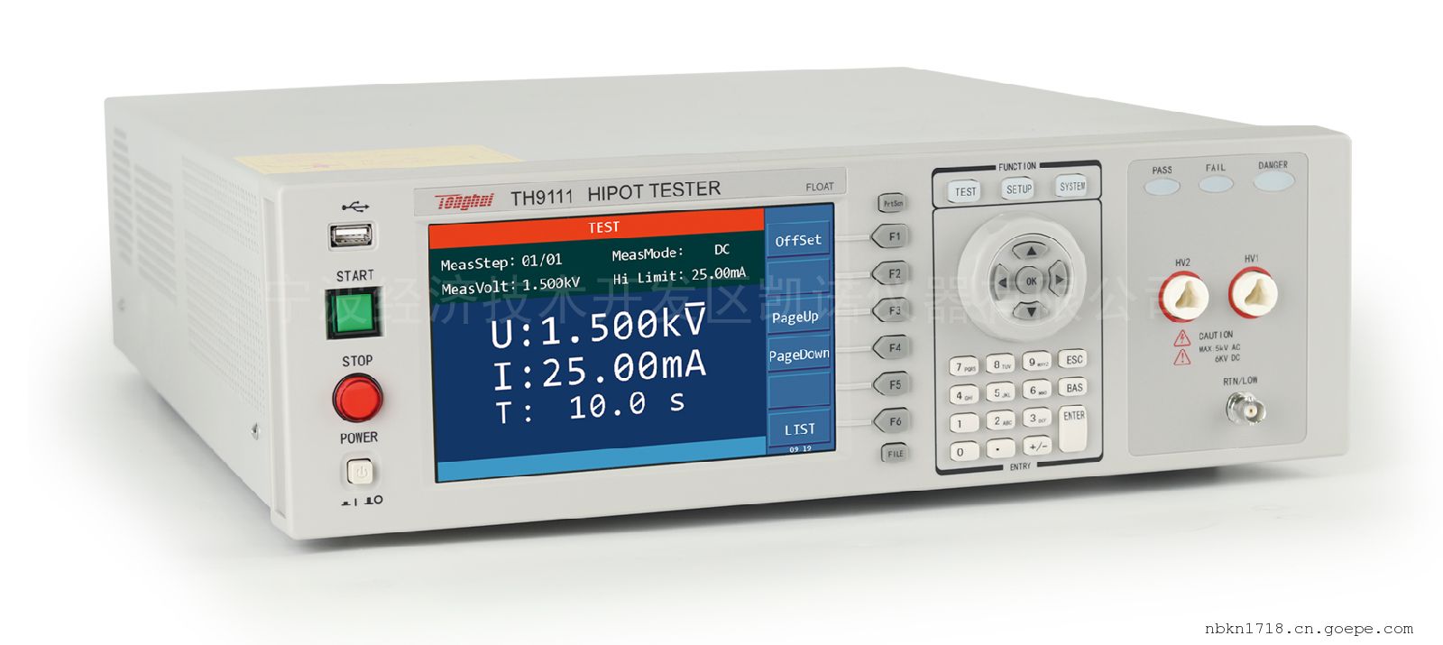 宁波同惠TH9111是一款大功率程控交直流耐压绝缘测试仪,AC 5kV/40mA/20OVA输出,高压浮动输出设计,符合欧盟标准EN50191安全要求;采用TFT-LCD显示全新操作界面,高分辨率7寸800×480点,具有多种强大功能(详见功能特点)。