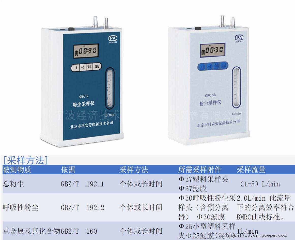 仪器符合GBZ/T 192.1 2007《工作场所空气中粉尘测定》、HJ 583 2010《环境空气苯系物的测定固体吸附 热脱附 气相色谱法》、JJG 956 2013《大气采样器检定规程》、GB/T 17061 1997《作业场所空气采样仪器的技术规范》。适用于工作场所中职业性危害因素的粉尘、金属以及氟化物等尘态物质的个体采样,也适用于臭氧、TDI等物质的定点采样。