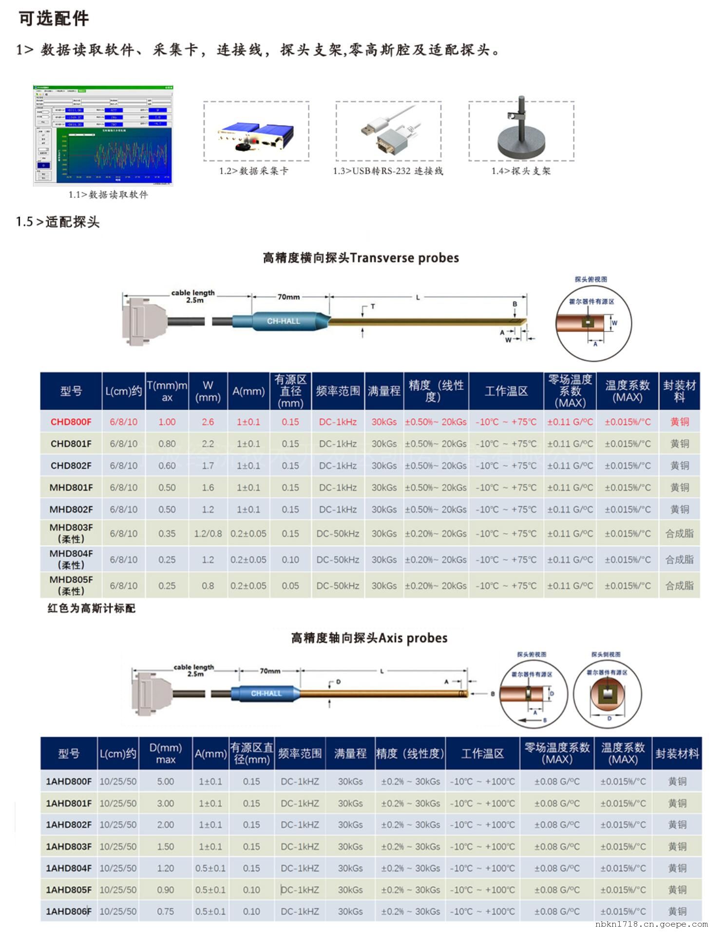 CH-1300高斯计可配常规及耐高低温一维探头、单轴探头、横向探头