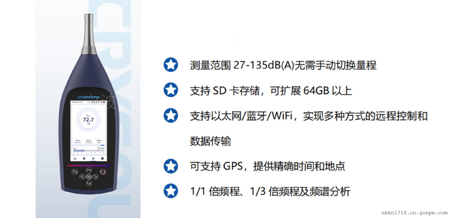 标准:GB/T3785.1-2010 1 级IEC61672-1: 2013 1 级