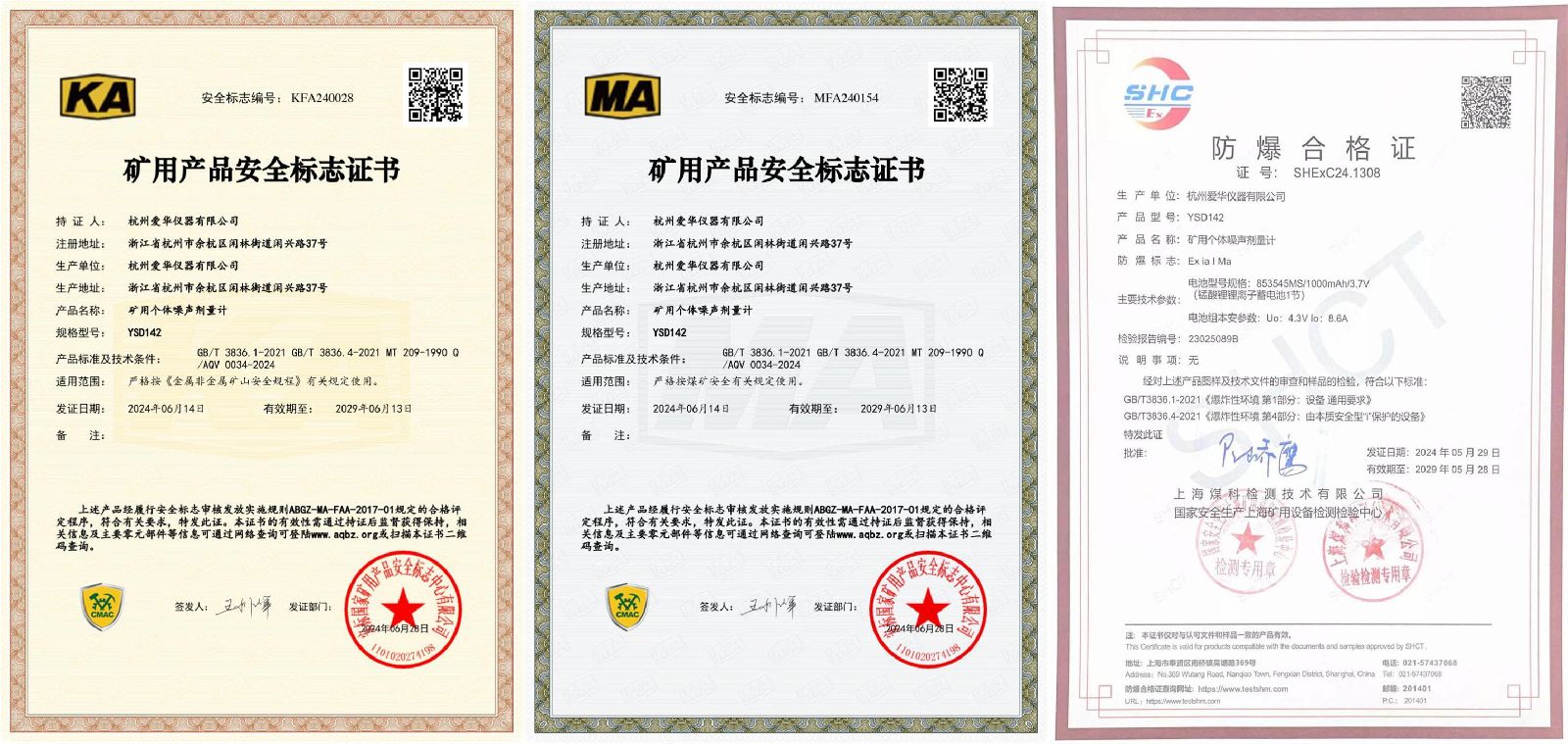 安全标志编号(煤矿):(证书编号:MFA240154)